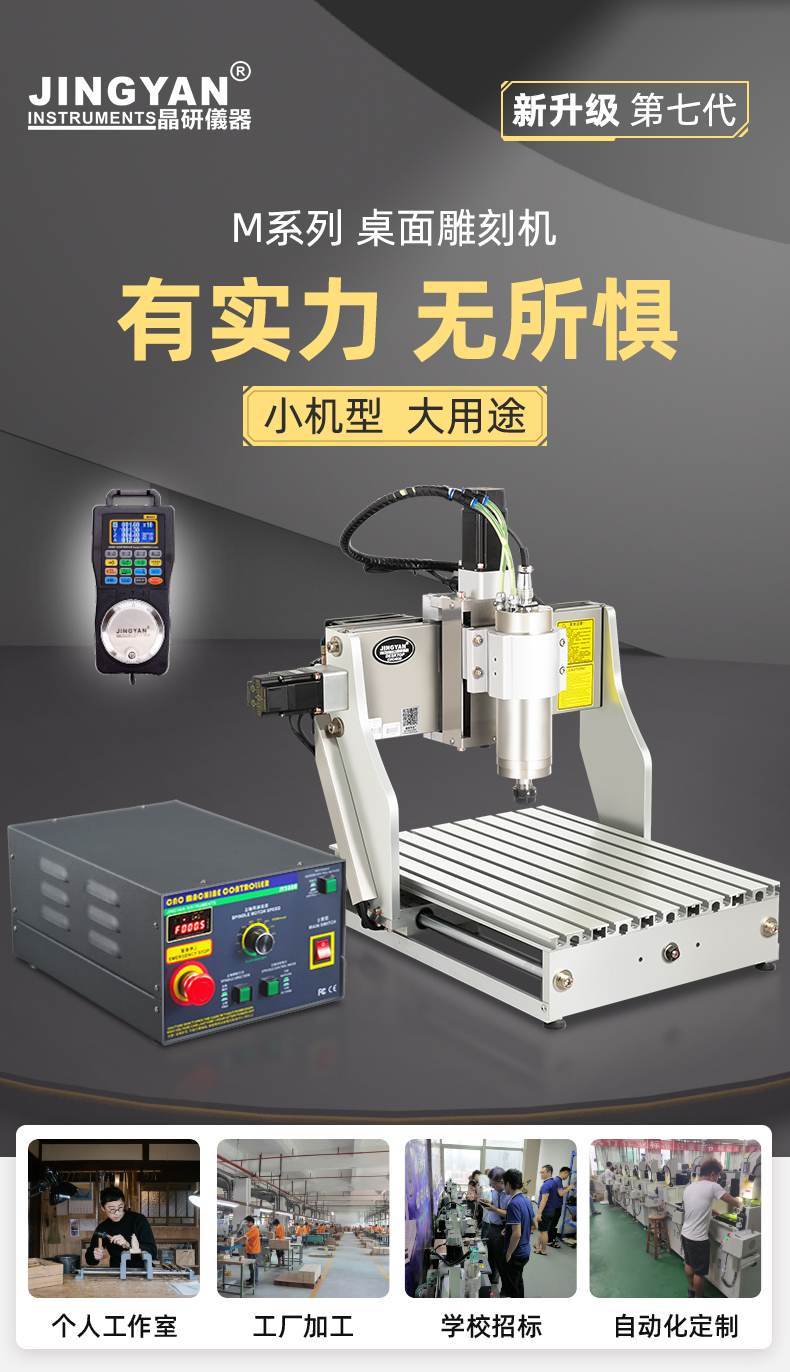 晶研M系列桌面雕刻機(jī)提供多種功率選擇,適應(yīng)不同硬度材料加工需求。其高精度編碼限位系統(tǒng)、高速閉環(huán)電機(jī)和智能驅(qū)動卡,確保了加工的精度、速度和節(jié)能效果。此外,晶智牛云系統(tǒng)和手機(jī)小程序?yàn)橛脩籼峁┝吮憬莸慕虒W(xué)和售后服務(wù),使其成為工業(yè)應(yīng)用的理想選擇。