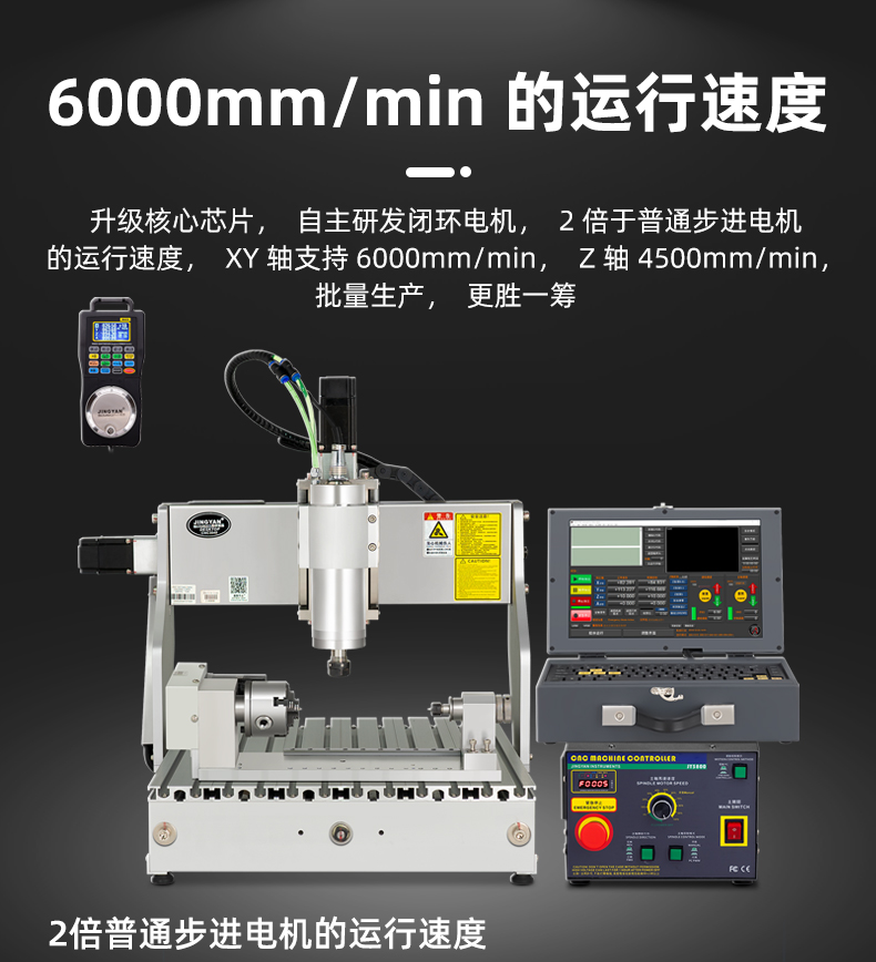 晶研M系列桌面雕刻機提供多種功率選擇,適應(yīng)不同硬度材料加工需求。其高精度編碼限位系統(tǒng)、高速閉環(huán)電機和智能驅(qū)動卡,確保了加工的精度、速度和節(jié)能效果。此外,晶智牛云系統(tǒng)和手機小程序為用戶提供了便捷的教學和售后服務(wù),使其成為工業(yè)應(yīng)用的理想選擇。