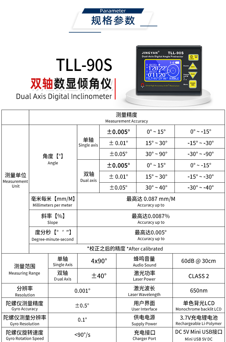 > TLL-90S 雙軸數(shù)顯傾角儀