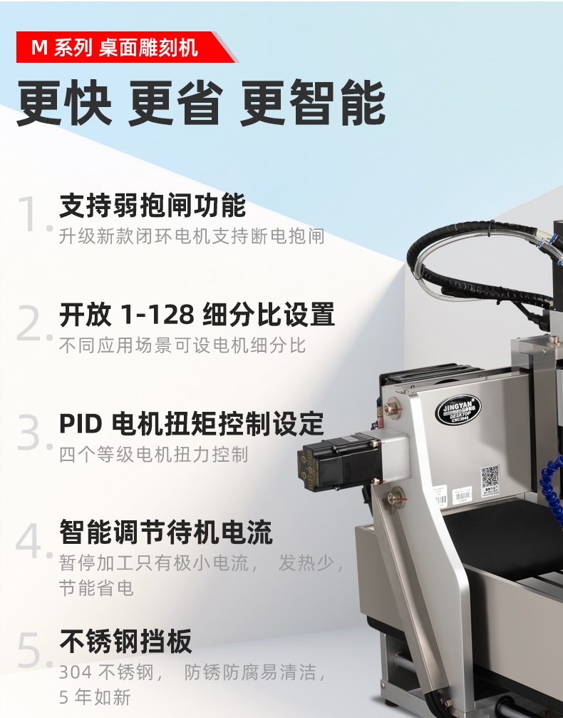 晶研M系列桌面雕刻機提供多種功率選擇,適應不同硬度材料加工需求。其高精度編碼限位系統(tǒng)、高速閉環(huán)電機和智能驅動卡,確保了加工的精度、速度和節(jié)能效果。此外,晶智牛云系統(tǒng)和手機小程序為用戶提供了便捷的教學和售后服務,使其成為工業(yè)應用的理想選擇。